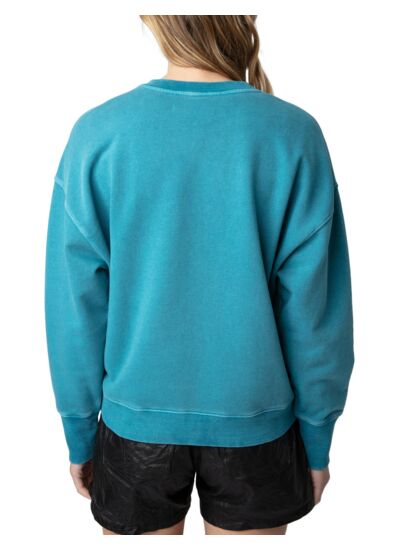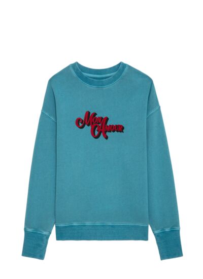 100 % coton biologique, ce sweatshirt présente un col rond classique, des manches longues et des bords côtelés pour une tenue impeccable. L’imprimé "Mon amour" à l’avant apporte une signature graphique distinctive. Disponible en bleu Aqua, il incarne l’esprit Zadig&Voltaire.