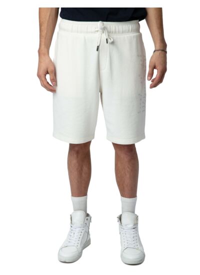 Short en coton biologique flammé blanc Judo homme. Imprimés points cardinaux Zadig&Voltaire sur le côté. Cordon de serrage à la taille. Deux poches latérales et une poche plaquée au dos. Composition : 100 % coton.