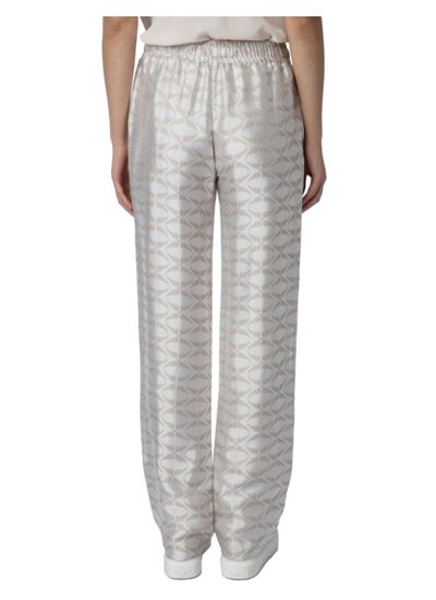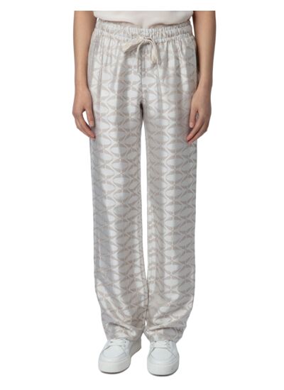 Composition : 100 % viscose. Taille élastiquée avec cordons de serrage à motifs. Deux poches latérales. Coloris rose pâle. Marque : Zadig&Voltaire.