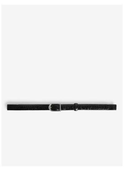 Conçue pour sublimer vos looks, cette ceinture en cuir embossé effet croco apporte une touche sophistiquée et moderne. Son design épuré et sa finition brillante captent la lumière, révélant un grain travaillé qui évoque l’exclusivité. Idéale pour structurer une silhouette ou rehausser un jean, elle s’impose comme un indispensable du dressing contemporain.