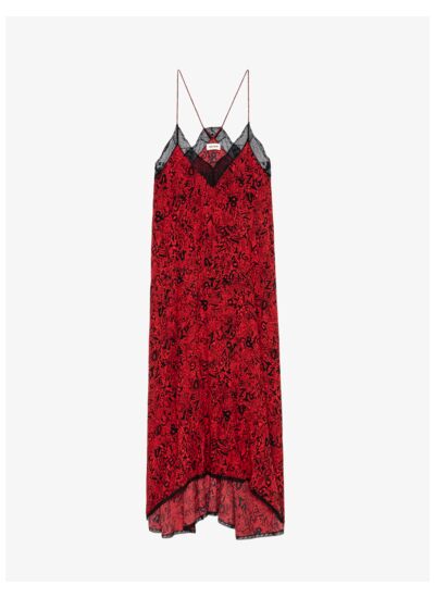 Composée à 100 % de viscose, cette robe bénéficie d’une fabrication soignée avec une dentelle française exclusive réalisée par Sophie Hallette pour Zadig&Voltaire.com. Les bretelles fines ne sont pas réglables, et la coupe asymétrique crée un mouvement fluide et élégant.