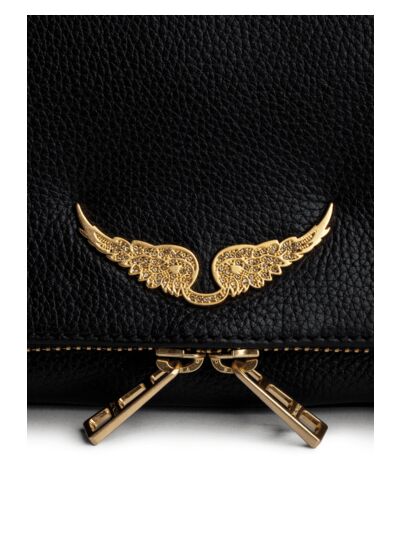 La doublure en coton noir ajoute une touche de sophistication, tandis que les deux chaînes entrelacées de cuir et métal doré amovibles offrent une polyvalence de style. Le charm ailes miroir en métal doré apporte une touche de glamour supplémentaire.