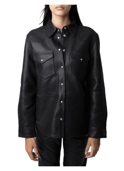 Affirmez votre style avec la chemise THELMA en cuir noir, une pièce iconique qui allie audace et élégance. Son design épuré et ses finitions soignées en font un incontournable du dressing contemporain.
