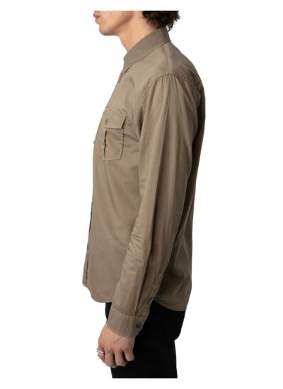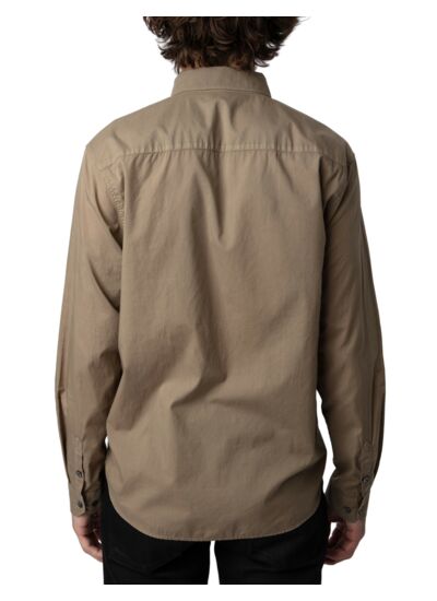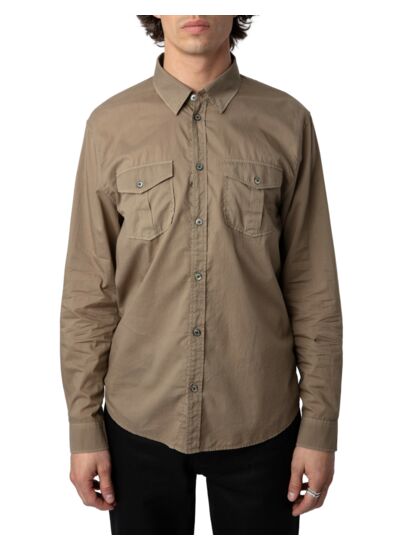 Composition 100 % coton. Col chemise, fermeture boutonnée. Manches longues avec poignets boutonnés. Deux poches poitrine plaquées à rabat. Couleur marron. Marque Zadig&Voltaire.