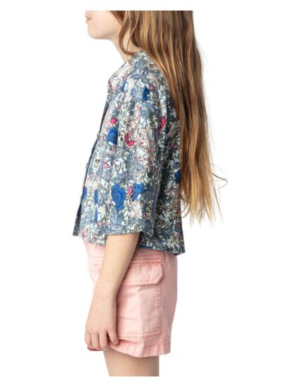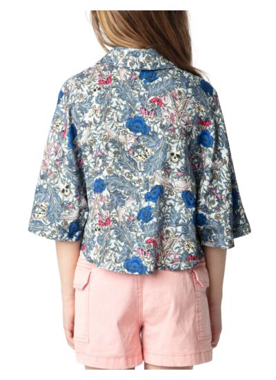 100 % viscose, tissu tissé pour une texture légère et fluide. Coupe droite, manches longues, col classique. Marque : Zadig&Voltaire.