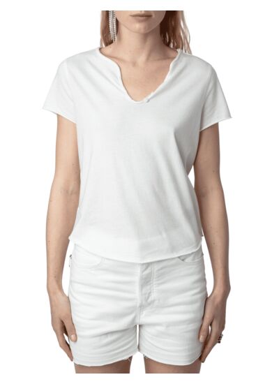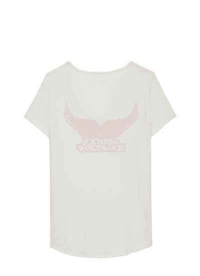 Affirmez votre style avec ce t-shirt tunisien court alliant modernité et élégance. Le badge ailes Zadig&Voltaire au dos apporte une touche audacieuse à une pièce intemporelle.