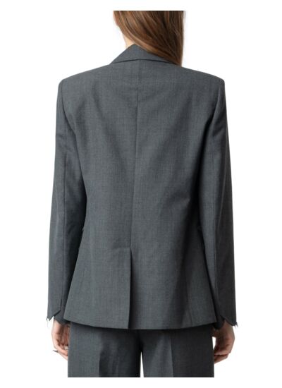 Conçu par Zadig&Voltaire, ce tailleur tissé allie structure et décontraction. Sa silhouette ajustée met en valeur la silhouette tout en offrant un confort optimal, idéal pour passer de la journée au soir sans compromis. Le détail raw edge apporte une touche rebelle et unique, parfaite pour celles qui veulent sortir des sentiers battus avec assurance.