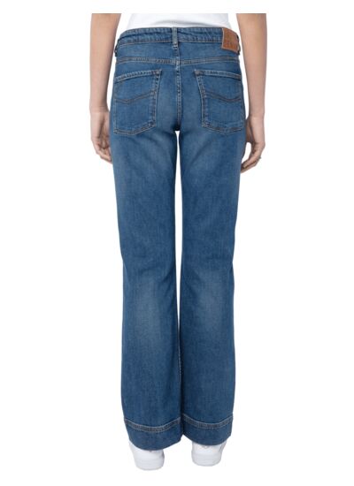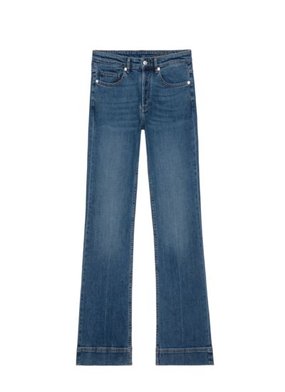 Fabriqué en coton de qualité, ce jean en denim est signé Zadig&Voltaire. Il dispose de cinq poches classiques, de passants pour ceinture à la taille, d’un jacron en cuir "Zadig Denim" au dos, d’une sangle métallique sur le côté, et d’une broderie "Vincente" à l’intérieur de la taille.
