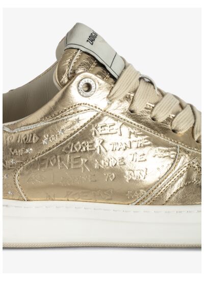 Conçues pour les amateurs de mode avant-gardiste, ces sneakers signées Zadig&Voltaire marient un look métal graffiti à une silhouette épurée. Leur esthétique brute et travaillée s’intègre parfaitement à une garde-robe moderne, offrant une touche rebelle sans sacrifier le confort ni la qualité.