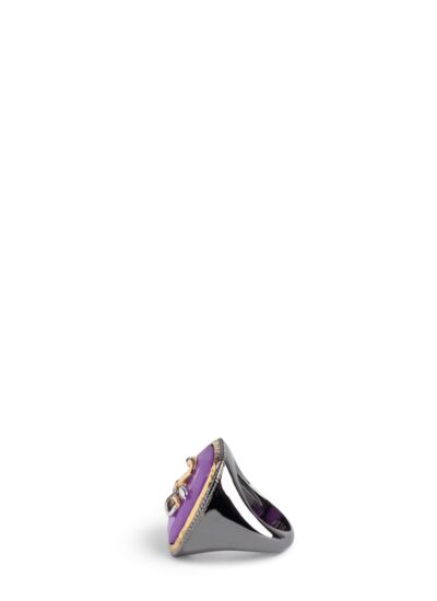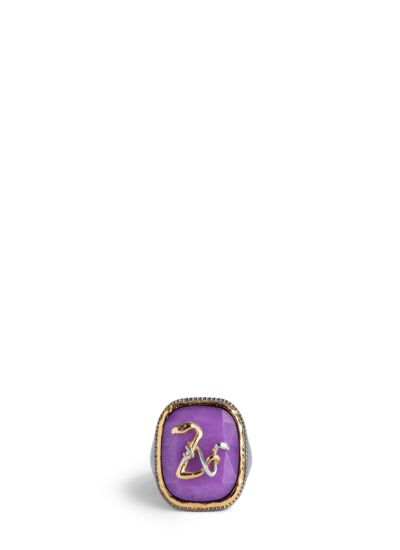 Affirmez votre style avec la bague chevalière ZV Snake Signet, un bijou audacieux qui mêle élégance et caractère. Son design noirci et doré, rehaussé d’une pierre violette facettée, capte tous les regards.