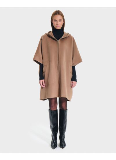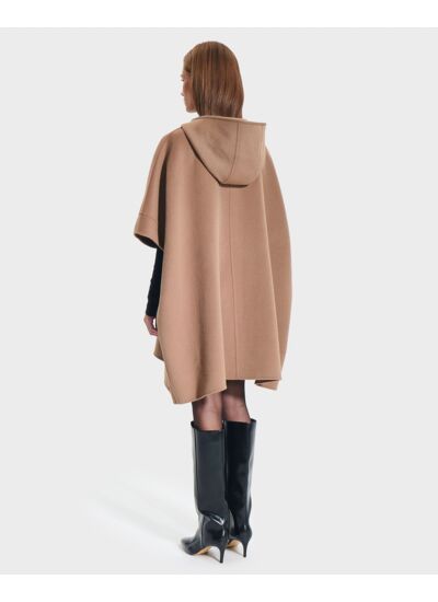 Cape mi-longue oversize, dans un délicat coloris camel, pour une élégance audacieuse.