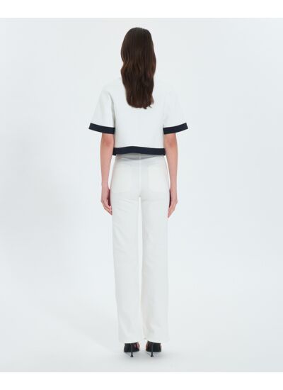 La veste VANILLA écrue offre légèreté et prestance. Elle se marie parfaitement avec un pantalon clair pour un look frais et printannier.