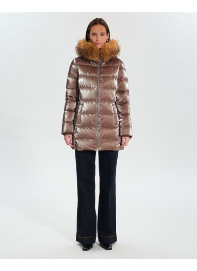 La doudoune DALYA vous offre chaleur et style avec sa capuche en fausse fourrure et son rembourrage en duvet.