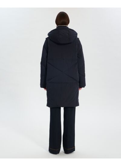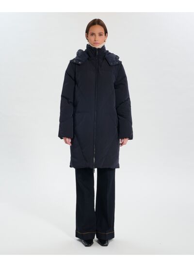 Cette doudoune longue au coloris nocturne allie qualité et chaleur.