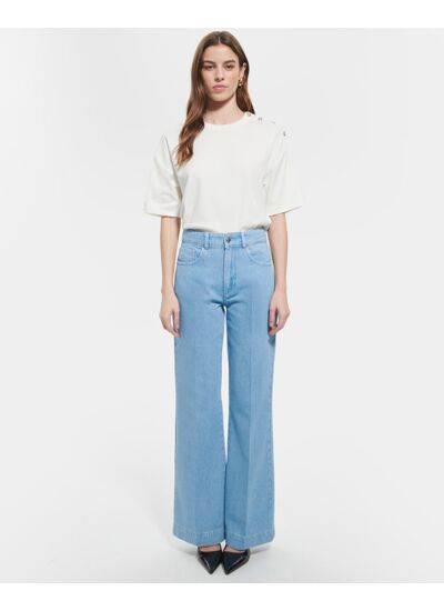 Revêtez un air de légèreté avec notre jean Palazzo taille haute, teinté d'un magnifique baby blue !