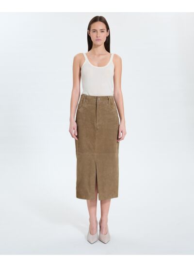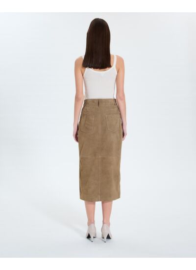 Affirmez votre style avec audace grâce à cette jupe crayon en suede véritable.