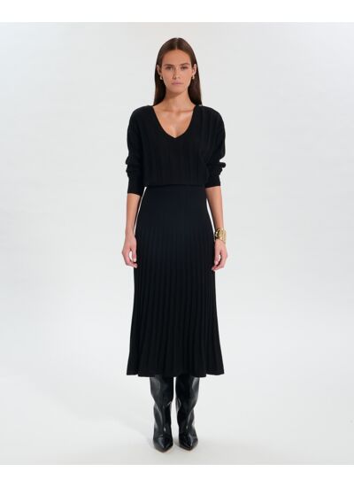 Confectionnée dans un coloris noir intemporel, elle s'asscocie parfaitement en total look au pull Naiima.