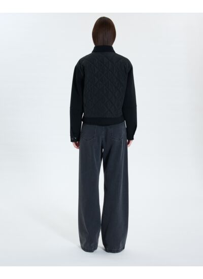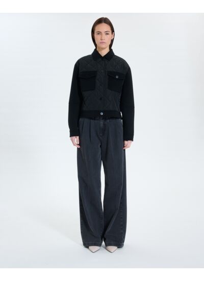 Son col chemise et sa bi-matière double face en laine offre élégance et modernité.