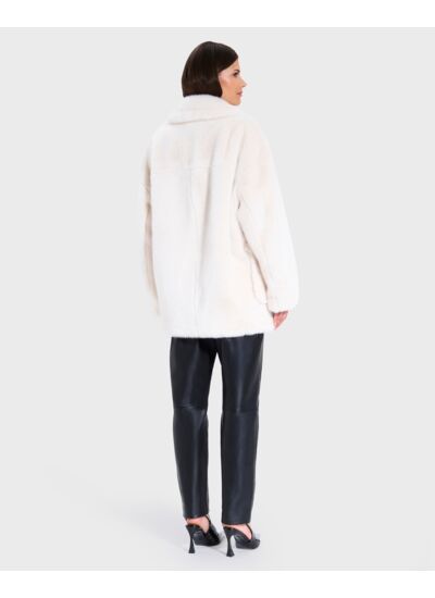 Faites sensation avec le manteau MARTIALA en fausse fourrure écrue.