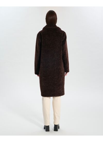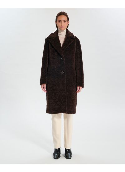 Ce manteau long façon fourrure se pare d'un col tailleur qui séduit par sa coupe élégante.