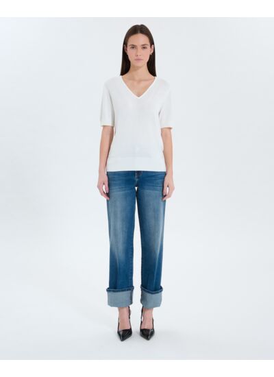 Son col V et son délicat relief à l'avant subliment sa coupe élégante.