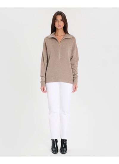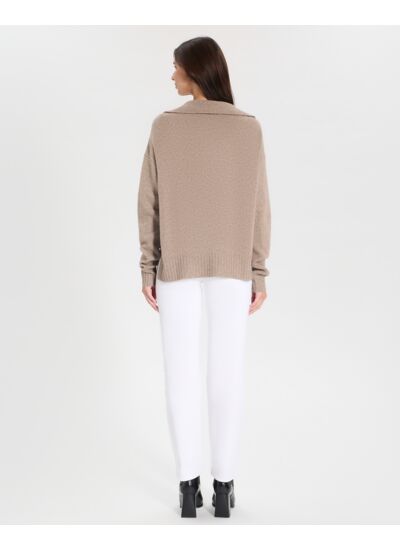 Optez pour une allure décontractée et stylée avec ce pull mi-long, rehaussé d'un col camionneur. Son coloris taupe apporte une touche chaleureuse à vos tenues.