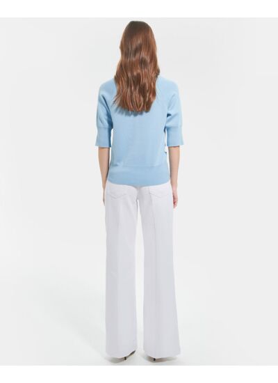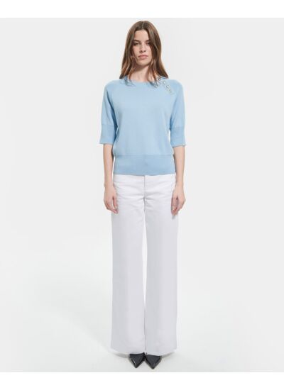 Le pull PAULINE en coloris bleu ciel est parfait pour toutes les occasions.