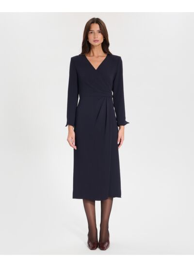 Dotée d'un délicat col V, cette robe offre aussi un effet plissé féminin et élégant.