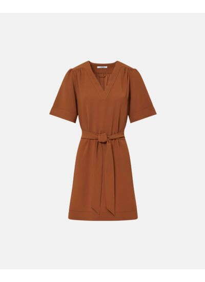 Le modèle Retie est une robe droite cintrée, soulignée par une ceinture amovible, mettant en valeur la silhouette.