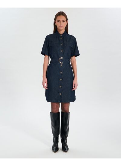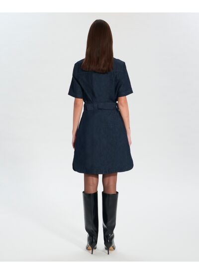 Élégante et féminine, cette robe courte en jean offre un style polyvalent pour toutes les occasions.