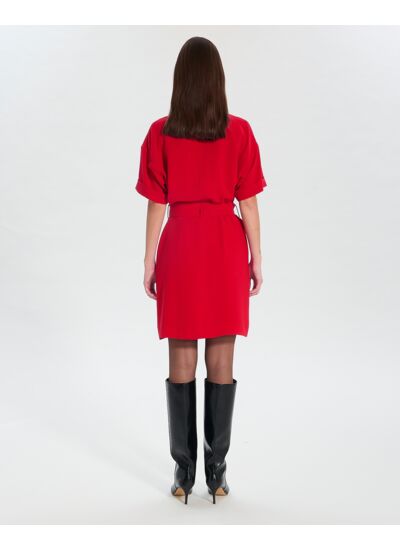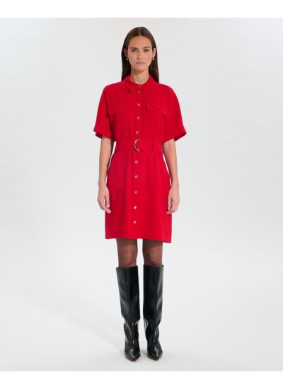 Optez pour cette robe saharienne au coloris rouge pour un look chic et audacieux.