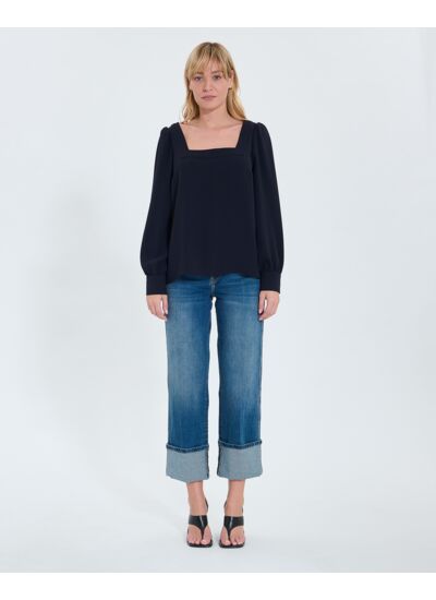 Craquez pour l'élégance de ce top fluide au col carré, qui sublime le décolleté avec raffinement.